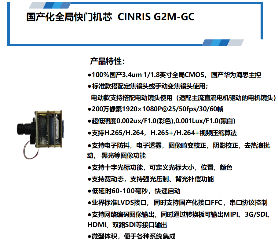 国产化全局快门军工I摄像机防抖串口协议军工十字